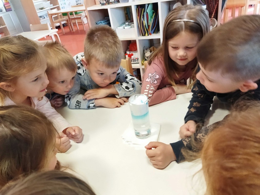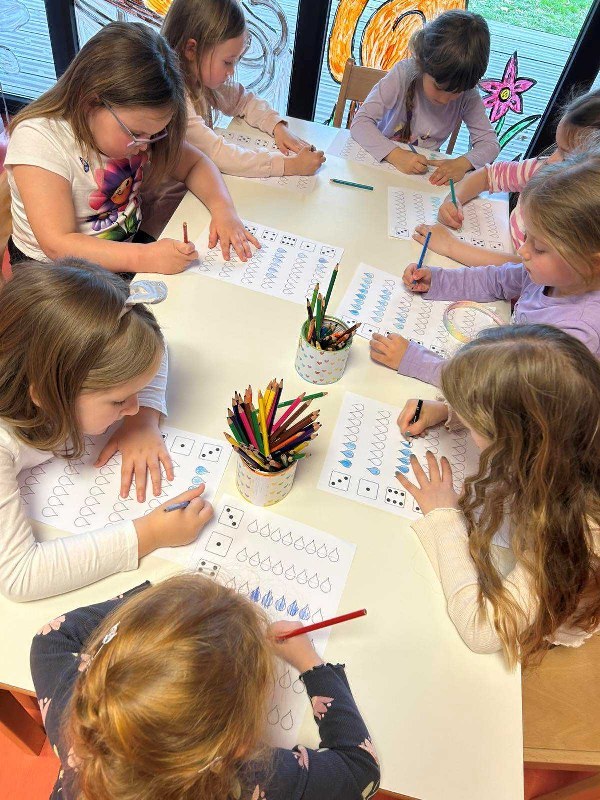 Pročitali smo slikovnice „Voda“, „Mala kišna kap“, posebno nam se svidio pokus „kiša“, brojali i bojali smo kapljice, muzicirali smo i s drvenim štapićima, proizvodili smo zvukove kapljica, kiše, pljuska…