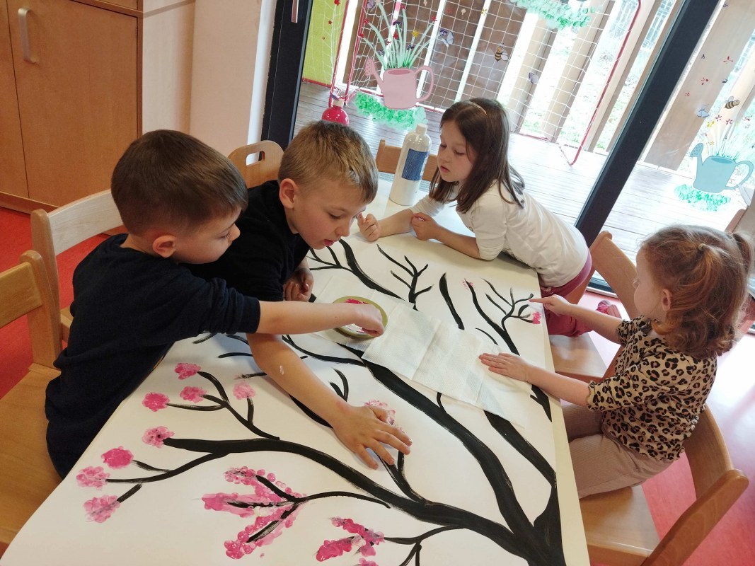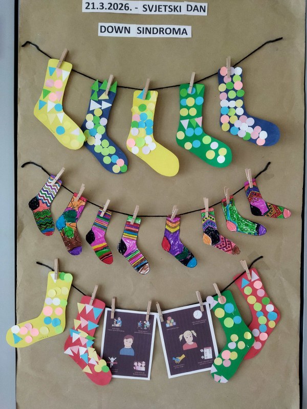 Pogledali smo i edukativni video „Što je Down“, razgovarali smo o različitostima. Bojali smo šarene čarapice povodom tog dana. Proljeće smo pozdravili grupnim radom „drvo u cvatu“.